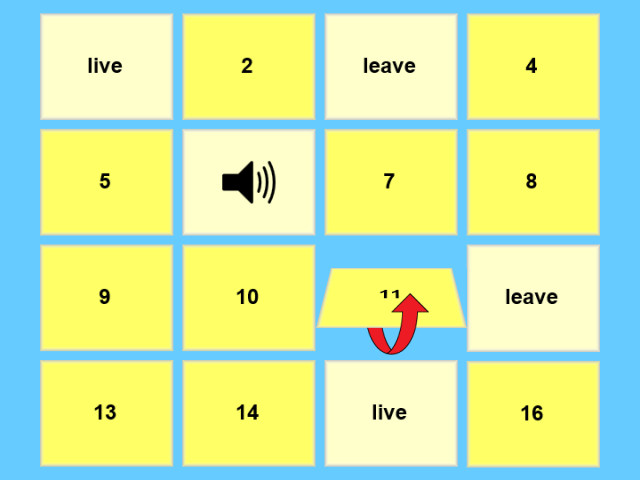 Bizonyára sokak számára ismerős a memóriajáték, amikor egymás után két-két kártyát felfordítva kell memorizálni a tartalmukat, majd az azonosakat egyszerre felfordítani. Ez a játék csak annyiban különbözik, hogy itt ábrák helyett szavak kiejtését kell megjegyezned hallás után! Ha egy lapot már felfordítottál, rákattintva újra meghallgathatod a tartalmát, de jól figyelj, mert a kártyák alatt egymáshoz nagyon hasonló kiejtésű szavakat is elrejtettem!